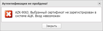 5. Не можете войти по сертификату. Закончился срок действия ключа (сертификата) или сертификат не зарегистрирован в системе АЦК